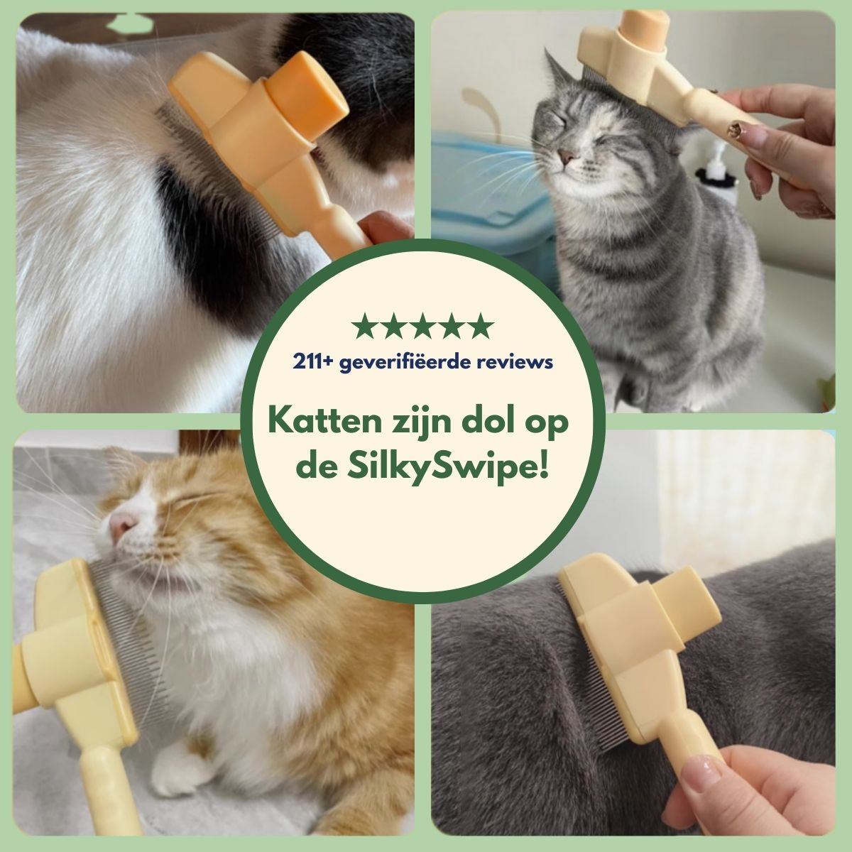 De SilkySwipe vermindert losse haren op kleding, meubels en vloeren. Eén korte borstelbeurt per dag houdt jouw huis schoon én jouw kat gelukkig – zonder gedoe, zonder stress.