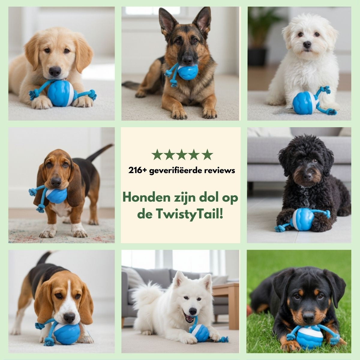 Ja, zeker! De onvoorspelbare bewegingen houden je hond mentaal alert en fysiek bezig. Daardoor vermindert verveling, stress en sloopgedrag – iets waar veel baasjes direct verschil in merken. Veel gebruikers geven aan dat hun hond rustiger is na het spelen met de TwistyTail.